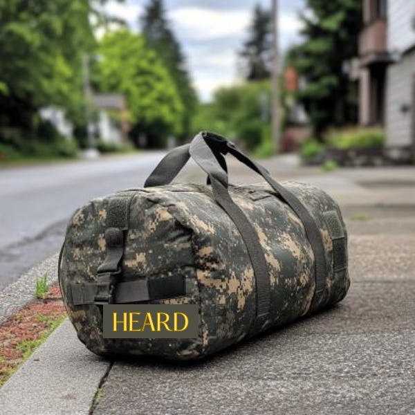 “Yes, someone put the bastard, sorry, I mean Joshua in my father’s old military bag. I could see HEARD stitched on the side despite all of the…blood…stains,” and then she started crying again.